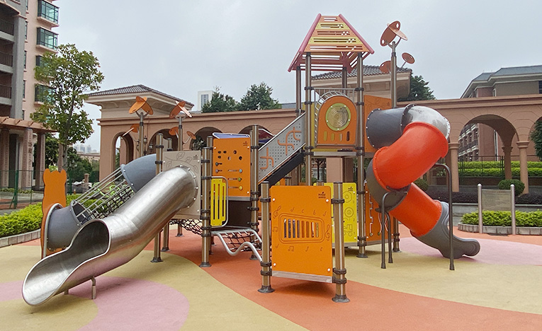 • 兒童戶外游樂(lè)設(shè)備室外大型不銹鋼兒童滑梯|佛山東湖洲房地產(chǎn)小區(qū)游樂(lè)設(shè)施案例